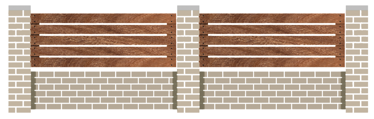 Tristan, clôture bois avec lame horizontales largeur entre 125 et 150 mm, épaisseur 15 mm avec ajourage de 25 mm.